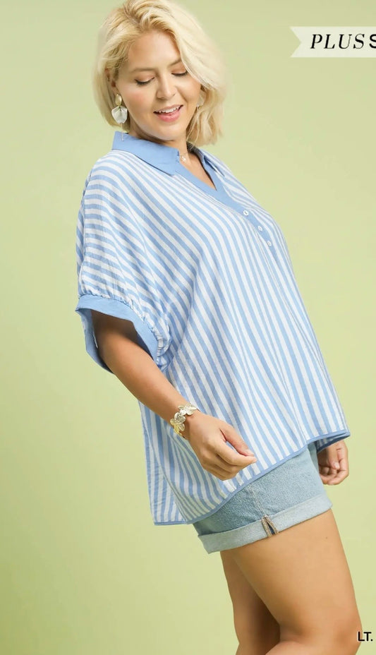 Blue stripe curvy blouse