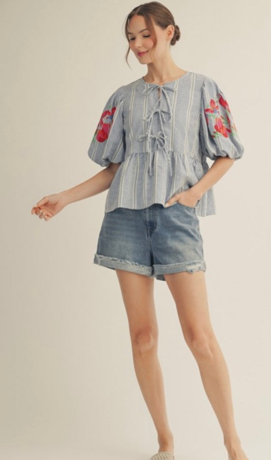 Blue floral sleeve top